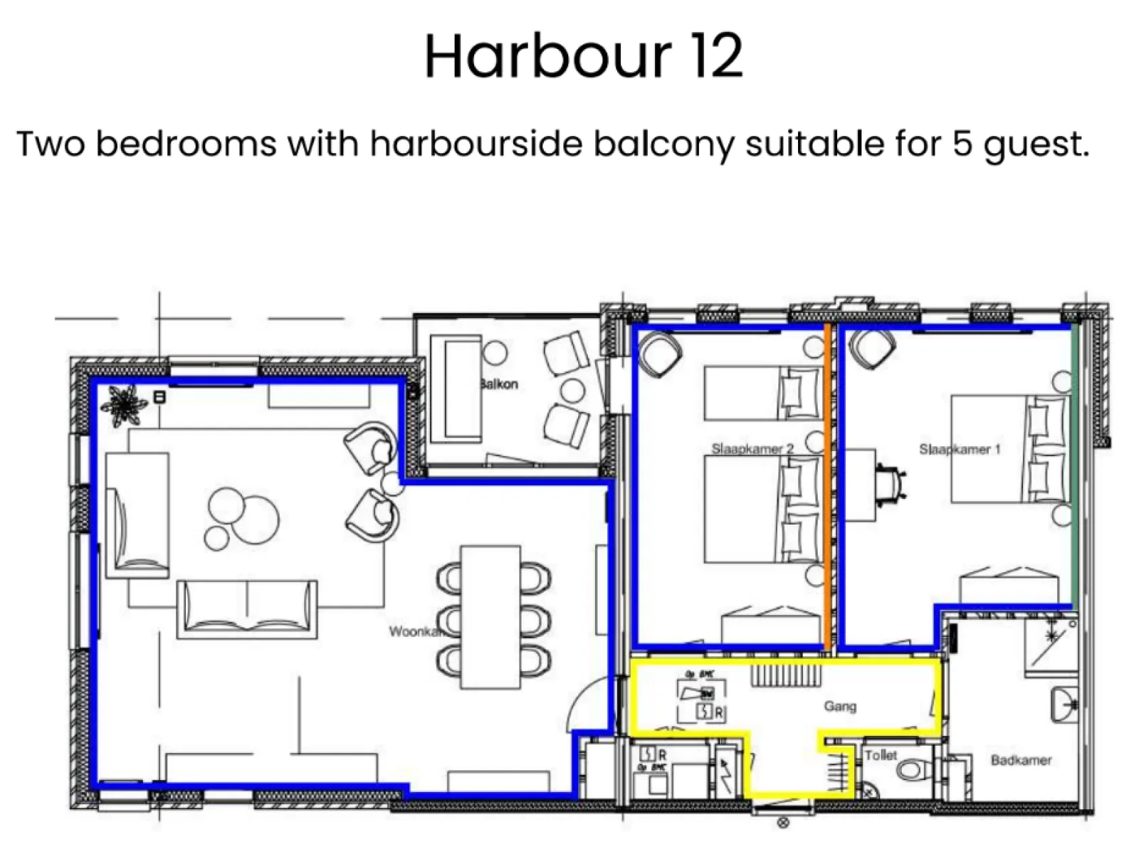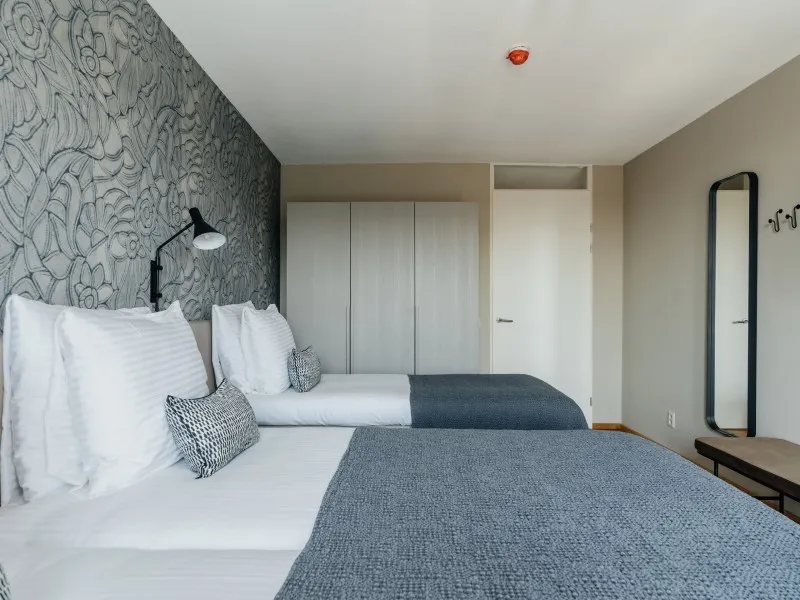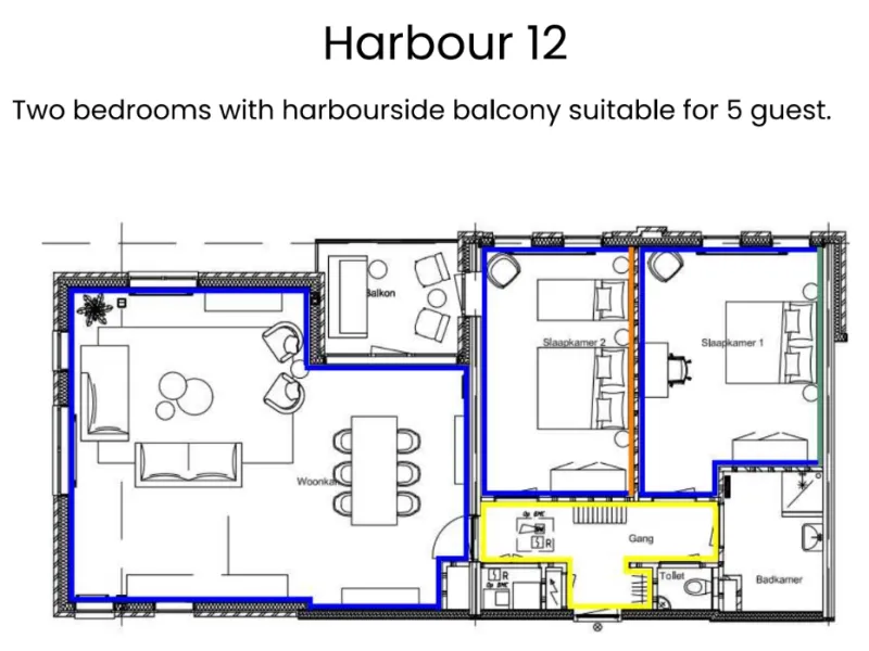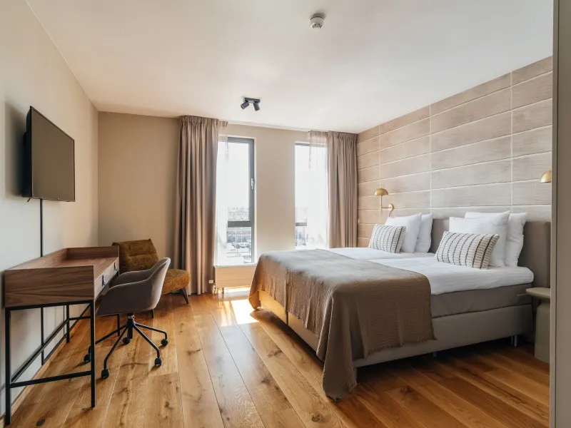 The BizStay Harbour no. 12 apartment is a truly remarkable gem. This spacious 2-bedroom apartment, covering 116 square meters, offers breathtaking harbour views from three sides. The apartment boasts a delightful balcony overlooking the harbour, providing a picturesque view of the boats coming and going. The interior of the apartment is exquisitely designed and furnished to the highest standard, ensuring a luxurious experience. It offers essential amenities, including high-speed internet, a large SMART TV, a fully equipped kitchen, a spacious bathroom, a separate toilet, and private laundry facilities with a washer and dryer. With two bedrooms, the apartment can comfortably accommodate up to five people. The comfortable box spring beds in each bedroom ensure a good night's sleep. Each bedroom also features a SMART TV. A desk is provided, making the apartment suitable for both work and leisure and perfect for both short and extended stays.